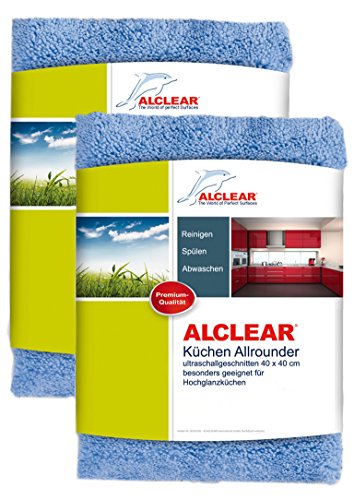 ALCLEAR 820203K_2 2er Set Mikrofasertücher für Hochglanzküchen, Microfaser Küchentuch, Geschirrtuch Küche, 40×40 cm