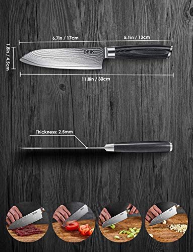 Deik Profi Damastmesser: Professionelles Küchenmesser; Hacken, Schneidet problemlos Fisch, Fleisch und Gemüse. Für bestes Gelingen aller Gerichte in jeder Küche! Das beste Geschenk für Geburtstag, für die Mutter, den Vater oder für Freunde Eigenschaften: √ Präzisionsgeschmiedet, ultra scharf, verschleißfest, einteilig, VG10 67Layer √ Wootz-Stahl fügt Gegengewicht und Auszeichnung hinzu √ Charakterisiert durch markante Muster von Streifenbildung und Mottling erinnert an fließendes Wasser, √ Die Kante ist mühevoll handgeschärft auf 18 ° pro Seite, wobei die perfekte Balance zwischen dem Erreichen ultradünner Scheiben und der maximalen Elastizität erhalten bleibt √ Lange Klinge gibt Bewgungsfreiheit für das Handgelenk und hilft mit bei der Vorbereitung und Hackbewegung für das Essen √ wunderschön handpoliert und satin finisch √ verjüngtes Design für Härte und Felxibiliät √ schmutzabweisend √ präzise gehärtet √ Polierter Griff, um einen angenehmen Quetschgriff zu erleichtern √ Volle Verarbeitung für unglaubliche Robustheit und Qualität √ Premium-Qualität laminiert pakkawood Griffe aus Spanien importiert, für überlegene Stärke, Raffinesse und Schönheit. Hygienisch einwandfrei für beschäftigte Küchen √ Dreifach genietet für noch mehr Haltbarkeit √ Ergonomische Griffform für maximalen Komfort, Griff und Manövrierfähigkeit √ leichte Reinigung für Zeitarme Lieferumfang: 1 Damast Chefmesser 1 Messerbox