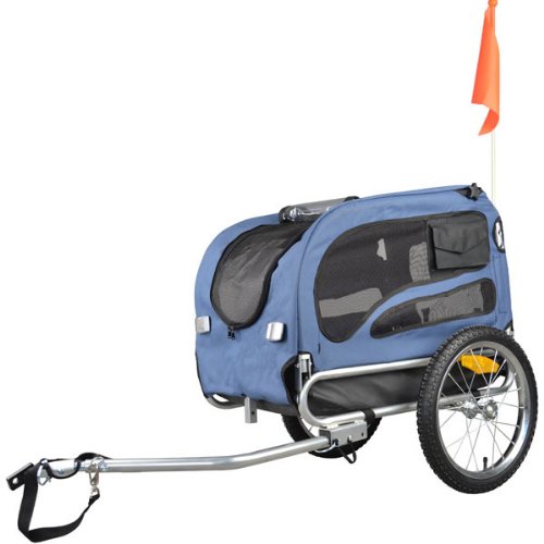 Der DOGGYHUT Fahrradanhänger bietet Ihnen eine grossartige Möglichkeit für einen aktiven Lebensstil mit Ihrem Haustier. Wenn Sie eine Fahrradtour unternehmen wollen nehmen Sie Ihren Hund einfach mit. Dieser hochwertige Hundeanhänger mit wasserabweisender Beschichtung dient hervorragend als Begleiter Ihres Ausflugs mit Ihrem Liebling. Er lässt sich mit wenigen Handgriffen in einen Jogger verwandeln, kein Werkzeug notwendig! Der Doggyhut Fahrradanhänger löst dieses Problem und Ihr Haustier wird die Fahrt geniesen. Artikelbeschreibung: – Starke Stahlrohrrahmen und wasserdichte Polyesterflächen (600 D) – Anti-Rutsch Matte inklusive – Hintereingang mit Reißverschluss für einen einfachen Einstieg – Seitenflächen aus Venyl sorgen für Schutz bei Wind und Regen – Einstellbarer Sicherheitsgurt sorgt für Sicherheit bei der Fahrt – Aufbau sehr schnell und ohne Werkzeug Flach zusammenklappbar für einfachen Transport und Lagerung – Universelle Fahrradkupplung für die Hinterachse inklusive – 16“ Luftbereifung – Reflektoren an allen vier Seiten vorhanden, für zusätzliche Sicherheit bei Dunkelheit und schlechten – Sichtverhältnissen Sicherheitswimpel für bessere Sichtbarkeit – Jogging-Kit (Schiebegriff und 12“ Vorderrad) inklusive Technische Daten: – Maximale Kapazität: 40 kg – Abmessungen innen: 68 cm x 43,5 cm x 50 cm – Maße zusammengeklappt: 68 cm x 22 cm x 52 cm – Gewicht: 14,2 kg – Farbe: BLAU