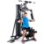 FINNLO Kraftstation Autark 1500 Black Edition inkl. passender Puzzlematte Die AUTARK 1500-Kraftstation verspricht einen professionellen Einstieg ins Krafttraining. Butterflies, Latissimuszug und Rudern sind bei dieser Kraftstation ebenso möglich wie Crunches und zahlreiche Seilzugvarianten. Im Gegensatz zu anderen Kraftstationen besitzt das AUTARK 1500 Multi-Gym eine professionelle Vorrichtung für umfassendes Beinmuskeltraining inklusive Beinbeugen und Bein-Curls. Außerdem ist ein Trizepsseil integriert, damit Sie mit der Kraftstation noch effektiver trainieren können. Gleiches gilt für den Butterfly-Hebelarm, dessen Winkel 5-fach verstellbar ist und somit Variationen zulässt. 16 Scheiben à 5kg Das Herz der AUTARK 1500-Kraftstation ist ein 80kg-Gewichtblock, der sich in 16 Scheiben à 5kg unterteilt und leicht justierbar ist. Platz nehmen Sie auf ergonomisch geformten Polstern, wobei sich Rückenlehne und Sitzhöhe vertikal anpassen lassen und eine perfekte Trainingsergonomie ermöglichen. Dazu zeichnet sich sie Kraftstation durch einen stabilen Stahlrohrrahmen und kugelgelagerte Rollen aus. Optional kann die AUTARK 1500-Kraftstation mit weiteren 20kg aufgerüstet werden. In der Lieferung ist eine passende Puzzle-/ Unterlegmatte enthalten. Die Lieferung besteht aus 4 Kartons mit folgenden Abmessungen: 1. Karton: L156 x B73 x H31, Bruttogewicht: 95,70kg2. Karton: L202 x B27 x H24, Bruttogewicht: 41,10kg3. und 4. Karton: L44 x B42 x H16, Bruttogewicht: 39,60kg Technische DatenMarkeFinnloBesonderheiten / Zusatzausstattung5-fache Winkelverstellung für Butterfly-Auflagen Ergonomisch angepasste Komfort-Polster i