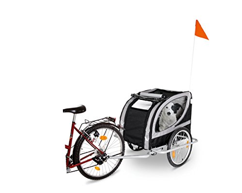 Die nächste Generation der beliebten Doggy Liner Hundefahrradanhänger. Der Doggy Liner Paris DeLuxe besitzt Aluminiumräder und einen Teflon® beschichteten Bezug der komplett verschraubt und damit abnehmbar ist. Das Besondere am Modell Paris ist die Federung, die für höheren Fahrkomfort sorgt. Für eine noch höhere Stabilität gegenüber dem Vorgängermodell wurde eine zusätzliche Querstrebe verbaut. Zusätzlich ist eine Joggerfunktion (1030652) erhältlich. Mit einem Griff zum Schieben und einem Vorderrad wird der Doggy Liner Paris zu einem vollwertigen Wagen für Ihren Liebling. L: 148 cm B: 90 cm H: 88 cm grau-schwarz. TEFLON® ist eine Marke von DuPont.