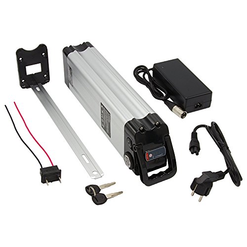 Technische Daten: E-Bike (Pedelec) Akku Lithium Ion 36V Fahrradhersteller: u.a. MiFa, Rex, Prophete Kompatibel mit: Trio, Samsung, Yuntong, ZhenLong ZL1010, Phylion XH370-10J -12J und 13J Spannung: 36V (37V) Kapazität: 12,0 Ah 444Wh Ladegerät: 2A Ladestrom entspricht einer Vollladezeit von 5-6 Stunden – Anschluss 3-polig XLR Maße: 38,5 x 11,0 x 7,4 (LxBxH in cm) Einschub: 35,0 x 1,9 (LxB in cm) siehe auch Details Gewicht: 3,3 kg Akku alleine jetzt auch im mattschwarzen Farbton erhältlich. ASIN: B01L9E4PN8 oder als Set mit Ladegerät und Schiene: ASIN: B07J5QSGDC Lithium-Ionen-Akkus kennen keinen Memory-Effekt. Daher können unsere Akkus auch in Teilladungen jederzeit nachgeladen werden – ohne Auswirkung auf die Lebensdauer. Battery Management System und Einzel-Zellüberwachung für ein langes Akku-LebenZu Lieferungen ins Ausland wenden Sie sich bitte direkt an unseren Service – Nicht alle Paketdepots nehmen Gefahrgut an Gewährleistung: 2 Jahre ( einschl. Zellen )