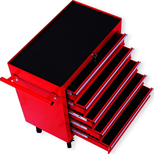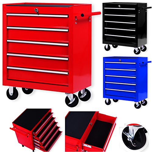 Masko® Werkstattwagen – 5 Schubladen, rot ✓ Abschließbar ✓ Massives Metall | Mobiler Werkzeug-Wagen ohne Werkzeug | Profi Werkstatt-Wagen unbestückt / leer | Rollwagen zur Werkzeugaufbewahrung mit Schloss | Schubfächer mit Kugelgelagerte Gleitschienen