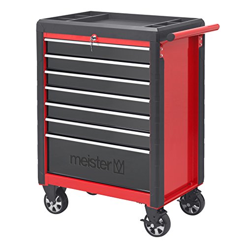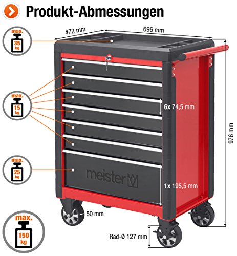 » Meister » Meister Werkstattwagen M-7, ohne Werkzeug – Stabile Räder mit Feststellbremse – 7 Schubladen mit Einlagen – Abschließbar / Mobiler Werkzeugwagen leer / Profi Rollwagen mit Schloss / 8986400