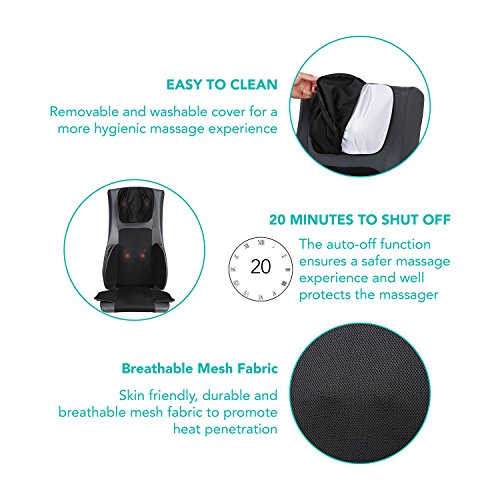 Naipo tief knetendes Massage Sitzkissen mit Wärmefunktion, Rollen, variable Rollenbreite, Vibrationen und individueller Punktmassage.Da wir unserem Wohlbefinden heutzutage mehr Aufmerksamkeit denn je schenken, ist die Massage eine beliebte Behandlung geworden. Sie entlastet nicht nur den Körper und befreit von Stress und Müdigkeit, sondern fördert außerdem die Durchblutung. Dieses Massage-Sitzkissen ermöglicht es Ihnen, diese Vorteile ganz einfach im Alltag zu genießen. Egal ob zu Hause oder im Büro – gönnen Sie sich eine Stress abbauende Massage, dank der Sie sich den ganzen Tag entspannen können.Produkt Features: 1. Wählen Sie verschiedene Massagetechniken aus. Sechs tiefknetende Massageköpfe, Rückenrollen, drei Luftkompressionsniveaus, Sitzvibration sorgen für die perfekte Massage und lockern bestimmte Punkte.2. Für eine bessere Durchblutung und zur Unterstützung der Muskelregeneration aktivieren Sie den Wärmemodus des Massagegeräts. Verkrampfte und angespannte Muskeln werden sich dank der Hitze entspannen, was zu einer effektiveren Erholung führt.3. Ein Premium Lederbezug rundet das Massageerlebnis ab, wobei das atmungsaktive Mesh-Material dafür sorgt, dass Ihnen nicht zu heiß wird, während Sie Ihre wunderbare Massage genießen.4. Einfach zu bedienen und einfach einzurichten. Der dehnbare Befestigungsgurt hilft dabei das Shiatsu Massagekissen an Stühlen oder anderen Sitzen zu befestigen. Verwenden Sie es, wann immer Sie sich gestresst fühlen und sich ganz entspannen möchten. 5. Behalten Sie dank der mitgelieferten Fernbedienung die volle Kontrolle über Ihr Erlebnis voller Entspannung. Der Controller macht es einfach, die Einstellungen anzupassen. Indem Sie den richtigen Modus wählen, können Sie Ihrem Hals, Rücken, Gesäß und Oberschenkeln eine professionelle Massagebehandlung geben.Lieferumfang enthält:1 x Massageauflage1 x Bedienungsanleitung1 x Ladegerät