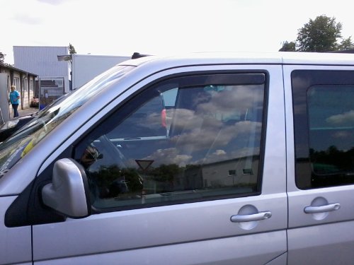 Windabweiser/Regenabweiser fürFahrzeughersteller: Volkswagen VWModell: T5 TransporterGeneration/Baureihe: Vor-FaceliftBaujahr: 2003-2009Karosserieform: Einbauort: VORNEMontageart: STECKMONTAGEWindabweiserform: StandardDiese Windabweiser verfügen nicht über eine Allgemeine Betriebserlaubnis (ABE). Das Fahrzeug ist deshalb einer anerkannten Prüforganisation (TÜV, DEKRA o.ä.) zur Abnahme vorzuführen. Die Verwendung eines Windabweisers ohne Allgemeine Betriebserlaubnis (ABE) im öffentlichen Straßenverkehr kann zum Erlöschen der Betriebserlaubnis des gesamten Fahrzeuges führen. Für die Erlangung einer allgemeinen Betriebserlaubnis im Wege der Einzelabnahme entstehen Zusatzkosten in der Höhe von 80,00 bis 200,00Euro.