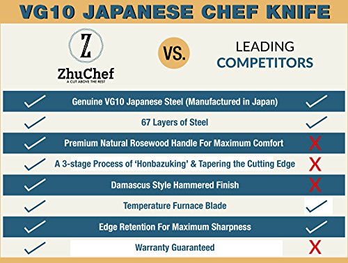 Alleskönner Mit unserem Produkt, das wie die alten Samurai Schwerter geschmiedet wurde decken Sie alle Aufgaben in der Küche ab. Das Messer ist 20 cm lang und wurde in 67 Lagen geschmiedet. Dadurch erhält es eine einzigartige Optik sowie weitere Vorteile: Rostfreie Eigenschaften Robuste VG10 Stahlklinge Lange Haltbarkeit Das einzigartige Küchenmesser ist in einen ergonomisch geformten und rutschfesten Rosenholzgriff eingebettet und bietet so dem Nutzer eine gute Griffigkeit. Erleben Sie ein neues Schneidgefühl mit unserem Damast Messer. Egal ob Tomaten, Zwiebeln oder Fleisch. Das Messer wird Sie niemals enttäuschen. Auf das geben wir Ihnen unser Wort und eine Geld-zurück-Garantie. Geben Sie uns einfach Bescheid und wir erstatten Ihnen den Betrag umgehend. Ohne wenn und aber. Wir wünschen Ihnen viel Vergnügen beim Kochen